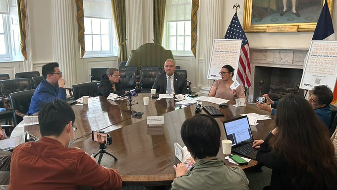 Commr Mayuga and @NYCImmigrants Commr @MCastroMOIA celebrated #MayDay by hosting a media roundtable on the City’s newly expanded Workers’ Bill of Rights, a multilingual and comprehensive guide to rights in the workplace in NYC.