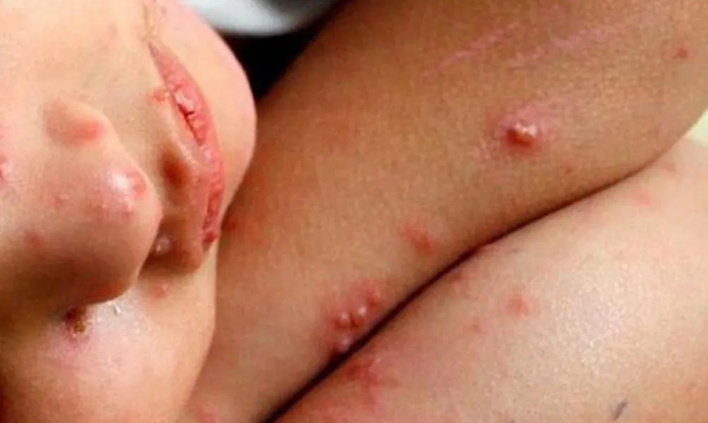 - Un sarpullido rojo, elevado y con manchas; generalmente comienza en la cara y se extiende al tronco, los brazos y las piernas entre tres y cinco días después de que comienzan los síntomas.