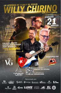 Fort Myers.- Havana Latin Producciones LLC anunció que el legendario cantautor y embajador de la música cubana, Willy Chirino, celebrará 50 años de carrera el sábado 21 de marzo de 2026 en el Caloosa Sound Convention Center.